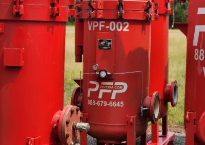 PFPUSA has for sale a large inventory of both Vertical and Horizontal Pre-Filter Vessels. (We also offer Pre-Filter Vessels for rent as well.) Pre-Filter Vessels are designed to remove particulate contamination, such as, dirty, rust, sediment, pipe scale, sand and metal from the fuel stream. They are typically located upstream or in front of Clay Treaters and Coalescer Separators. This is designed to protect and prolong the life of the more expensive filter cartridges, which is especially important if you are considering such a purchase.