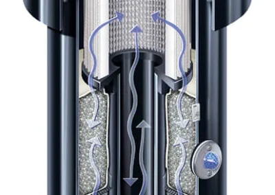 All of our Heavy Duty designs have 2 micron pleated filters and silica gel bags that are easily replaced.