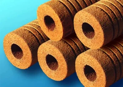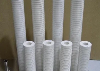 The unique manufacturing process of our resin-bonded cartridge filter elements produces a rigid fixed-matrix structure with true graded-porosity. This maximizes contaminant-holding capacity while preventing the unloading behavior that is often problematic in competitive products. The grooved outer surface greatly expands the filter’s effective surface area and further increases the contaminant holding capacity. The synthetic fiber/phenolic resin binder offers well- proven performance operating under challenging conditions of high temperatures, high fluid viscosities, and high differential pressures. Resin-bonded cartridge filter elements are ideal for paints, coatings, oils, and many other demanding applications.